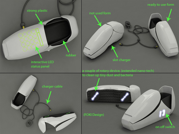 The FOKI is a floor cleaning shoe, yea you read that correctly. It has two rotary cleaners underneath each shoe to sweep up dust and kill bacteria. They’re cordless but there’s a LED display on the side to indicate battery levels. It sounds weird but if I shut my eyes really hard to imagine the possibilities of clean floors with every step, I’m sold. I hate sweeping - please, anything to make cleaning less tedious.