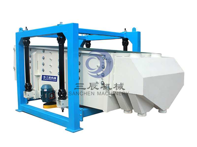 筛机启动后,筛机摇动体即筛箱在惯性力的作用下作前后往复运动,筛箱带动筛面作周期性摇动,从而使筛面上的物料随筛箱一同作定向跳式运动,期间,小于筛面孔径的物理通过筛孔落到下层,成为筛下物,大于筛面孔径的物料经连续翻滚跳运动后从排料口排出,完成筛分工作。