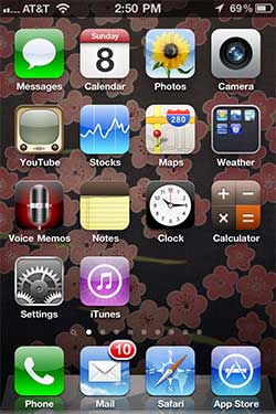 But from the side, the difference is very noticeable. The iPhone 4 now has a stainless steel band around the sides. This band is the antenna of the phone. I’m not going to go into the whole deal with the antenna problems with this phone. I’m sure everyone is sick of hearing about this issue by now anyway. I’ll just say that I’ve been using my phone without a case and have not had one dropped call in the 45 days that I’ve been using the phone. That’s not to say that everything is peaches and cream with my call quality though. I’ve been an AT&T customer for years and my call quality has pretty much sucked for all of those years. It’s not unusual to have clicks and the occasional outside call that bleeds in. The number of bars go up and down for no apparent reason. I’ve had this with any and all GSM phones that I’ve ever used. Phones will go back and forth from 1 bar, to full bars and all bars in between, while sitting in the exact same spot. So go figure.