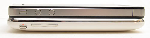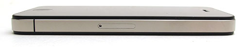 The right side is the new location for the SIM card slot. Good old Apple decided to go with a micro SIM card, which means that you’ll (I’ll) need an adapter if I wish to use the same SIM in a different GSM phone. Grrrrr. I still haven’t ordered an adapter.