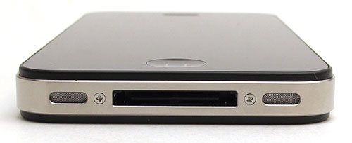The bottom edge has the main microphone along with the dock connector and speaker.