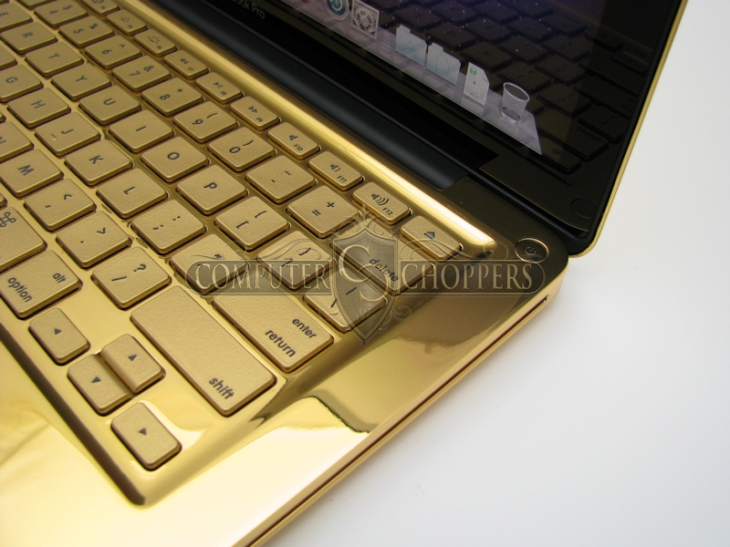 - Personalized Engraving into the metal and plated in 24kt Gold with a protective clear coat (Glass Engraving into the display cover or trackpad is also available).