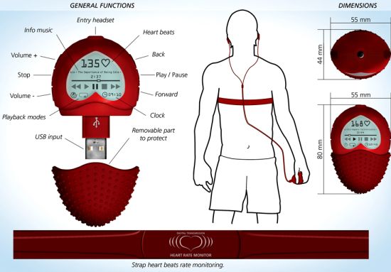 People usually like to carry their portable music players when going out for a walk, during their workouts in a gym or physical activities in an indoor sports complex. Created by Gusta Vicentini, the Heart is an innovative MP3 player that as depicted by its name resembles the shape of a living heart.