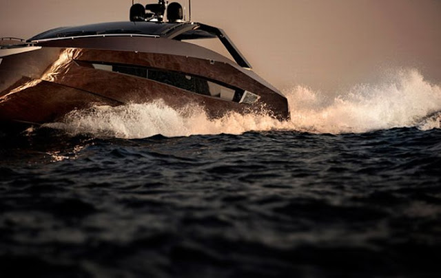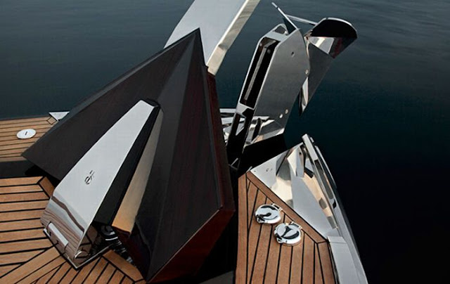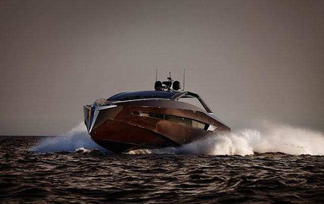 This awesome "Hedonist" yacht has been created by "Art of Kinetik" studio. It's a 63-foot (19 m) motoryacht that can cruise at speeds up to 40 knots.