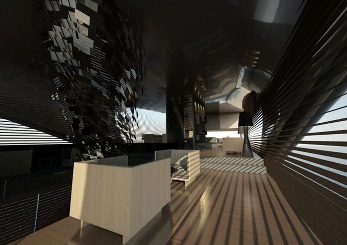 Flowing Marine Research Center Inspired by Tsunami Waves