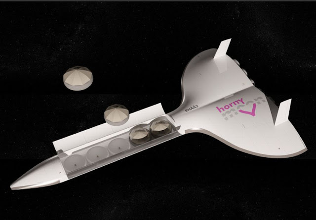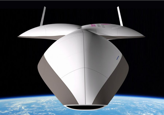 The fanciful futuristic Aircraft contains five capsules that are dropped at an altitude of 200km. Each capsule would features a specific mechanism to keep the bodies together and two 180 degree reclining seats that can be converted into a double bed. Each capsule hosts a couple for a 48-hours flight and when the flight is finished, each capsule follows an automatic and autonomous return flight.