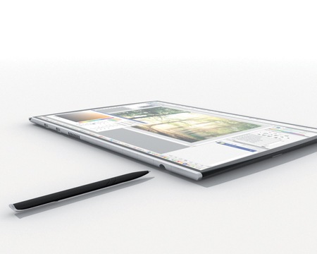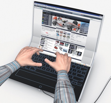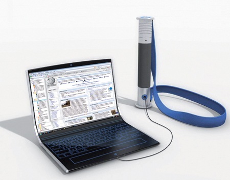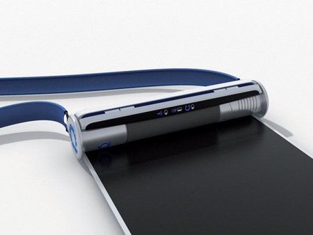 The large OLED surface goes from the traditional screen/keyboard configuration to large viewing screen to tablet. The carrying canister becomes the power supply and houses other features like the USB ports. Overall, it seems like a pretty great design. And with the OLED technology that’s already being used in products from Sony, it seems like it won’t be long until we actually see a laptop like this in production.