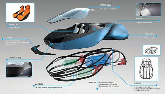 Visualizing the future of transportation, Norwegian designer Thomas Larsen Roed has created a vehicle concept dubbed the “Chase 2053” that runs on both the land and in the air to allow safe and brisk movement in urban environments. Developed for the year 2053, as indicated by its name, the futuristic vehicle also includes a core grown from mycelium, a process that does not require advanced facilities, which is further skinned with carbon nanotubes to provide extreme strengths in preferred directions. Powered by a slush hydrogen engine, the three-wheeled vehicle features a combination of stretch materials and polycarbonate to finish its exterior. In addition, the low need of fixed tools makes the vehicle lightweight and easy to produce on a large scale.
