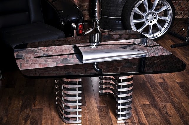 - office desk made from vintage car parts