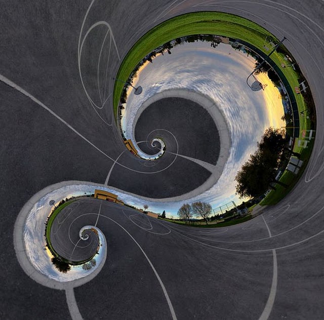 This type of photography is known as Escheresque in which an image is appears as it never ends. These photos are created by the artist name Josh Sommers using some mathematical formula.