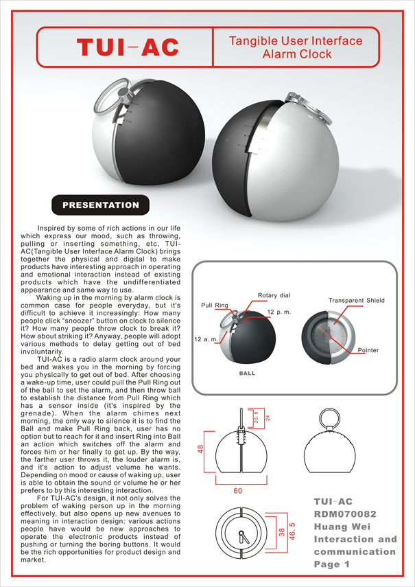 The most difficult thing for most of the people including myself is to wake in the morning on time. If you are worried of yours this bad habit then Grenade Alarm a little lovely bomb can help you to wake up on the time, if not then it’ll probably blown up your house - not exactly, this device is known as TUI-AC, the Tangible User Interface Alarm Clock. This alarm is very easy to use, just set with a pin, turn, crank, and arm by releasing, and go ahead to sleep. Once the bomb’s set time is reached, BOOM! And alarm goes off that you’ll never miss. To stop the noise you should have place the pin back in the bomb to stop the noise.