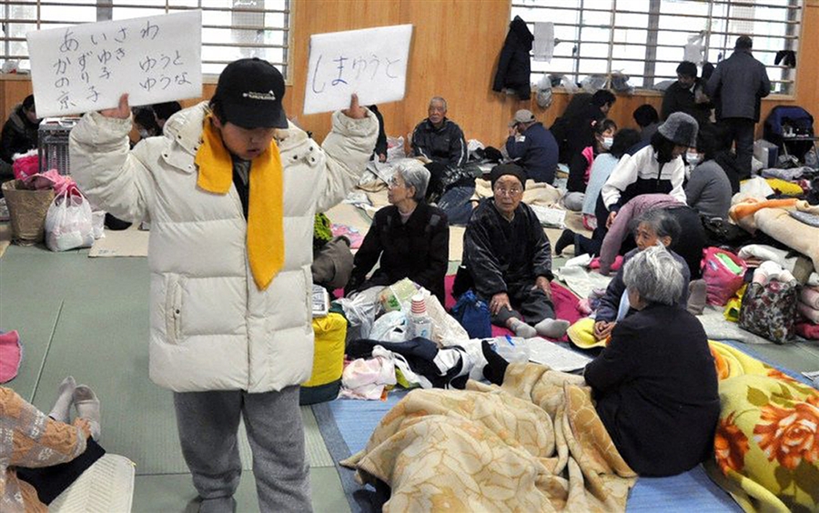 Toshihito a 9-year-old boy who missed his father, mother and grandmother during Tsunami searching all of them desperately at evacuation centers in the Japanese city of Ishinomaki. He holding up hand written signs pleading for information, on one is written their names, on the other the simple message "I will come again tomorrow."