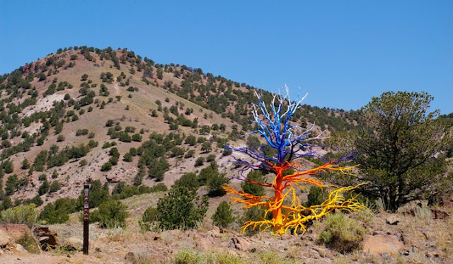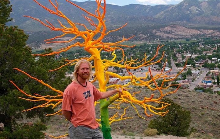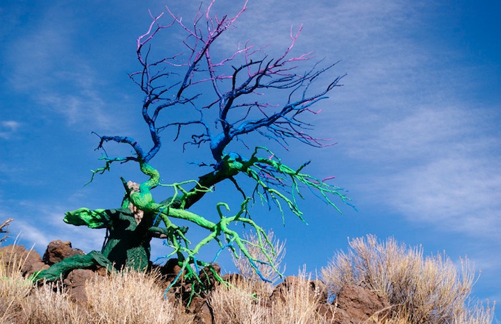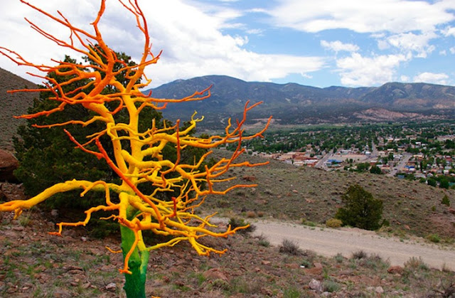 In cold weather when the trees die, they lost all their beauty. To re-gain this beauty Curtis Killorn give new life to trees by painting them with bright, psychedelic colors and make them beautiful again.