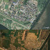 The Iwanuma-Matsushima area shown here has been completely wiped out by the earthquake and flooding, shown by the brown portion of the satellite image.