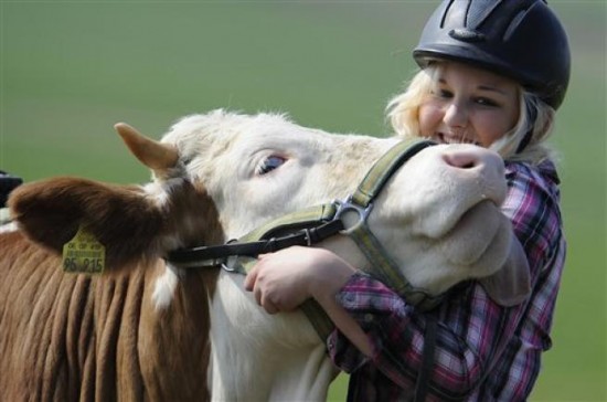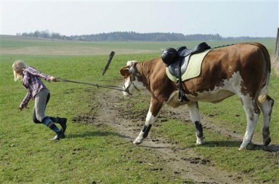 A 15-year-old girl Regina Mayer from Laufen, Southern Germany, trained her cow and turned it into show horse. Now she rides her pet cow Luna as if she were a well-trained show horse. Regina Mayer always wanted her own horse, but her parents kept saying “no”, and since she had a stable full of cows at her disposal, Regina decided she was going to try and ride one. After hundreds of hours of training and many baskets of treats, she managed to teach Luna to jump over home-made hurdles, just like a show horse.