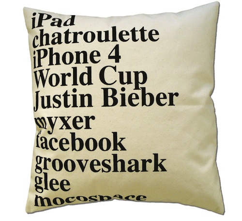 ElastiCo unveils their new pillow known as 2010 Google Search Pillow which depicts the last year most searched queries of google. You can buy this pillow on ElastiCo Etsy shop. Price of this pillow is $65.