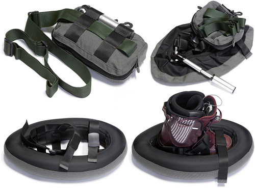 These are the smallest snowshoes I have ever seen invented by Small Foot, They can help you in bad conditions as they are inflate so you can stick your shoe in them and walk on snow as if you were light as a feather.