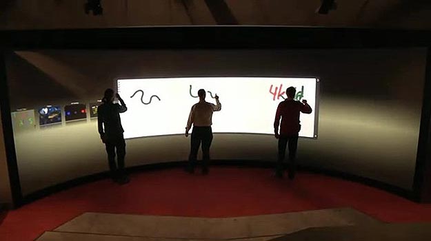 The University of Groningen, in the Netherlands, has converted a 3D theater into the world’s largest touchscreen, used for teaching mathematics and computer science students interactivity. The screen has a curvature of 135 degrees and is transparent.