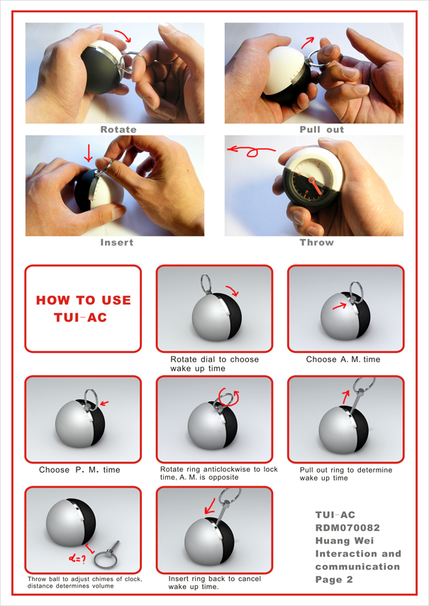 The most difficult thing for most of the people including myself is to wake in the morning on time. If you are worried of yours this bad habit then Grenade Alarm a little lovely bomb can help you to wake up on the time, if not then it’ll probably blown up your house - not exactly, this device is known as TUI-AC, the Tangible User Interface Alarm Clock. This alarm is very easy to use, just set with a pin, turn, crank, and arm by releasing, and go ahead to sleep. Once the bomb’s set time is reached, BOOM! And alarm goes off that you’ll never miss. To stop the noise you should have place the pin back in the bomb to stop the noise.